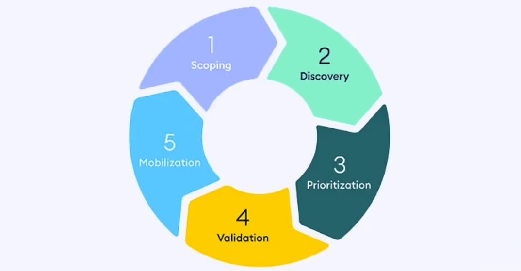 These phases create an ongoing loop. Once remediation occurs, discovery re-evaluates the environment, validation confirms closure, and new exposures are scoped and prioritized.