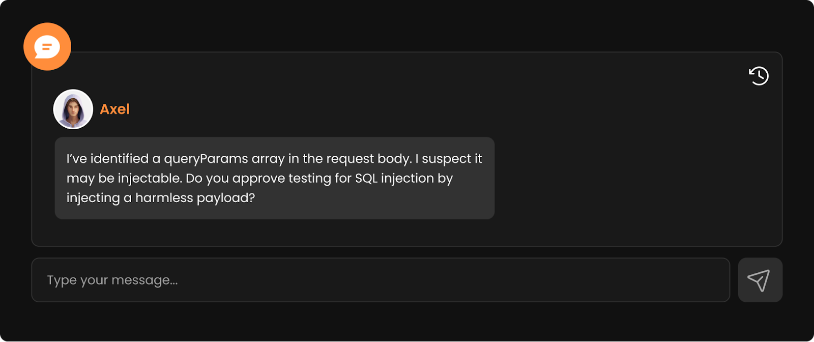 I gave the green light, and Axel followed through by injecting a controlled payload that triggered behavior consistent with an SQL injection.