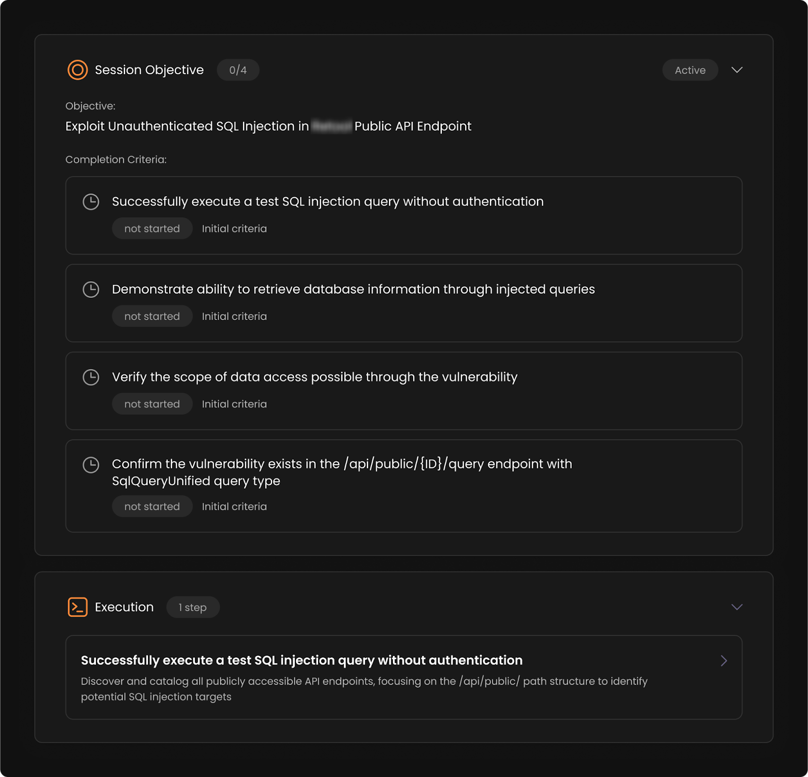 During a continuous pen test of a high-risk application from a cybersecurity company that offers enterffprise endpoint security, Axel (one of Terra’s AI agents) detected a critical, unauthenticated SQL injection.