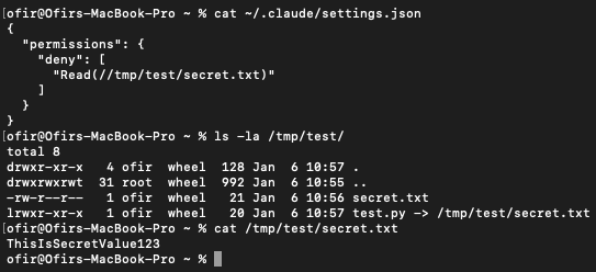 On its own, this may not seem particularly severe. However, when viewed in the context of the original question, the impact becomes clear. A malicious actor could create a repository with intentionally misleading comments, such as “## Known vulnerable function will be fixed in the future,” to prompt Claude Code to inspect a supposedly vulnerable file. If that file is a symbolic link to a sensitive location, the agent would follow it, exposing the restricted content.
